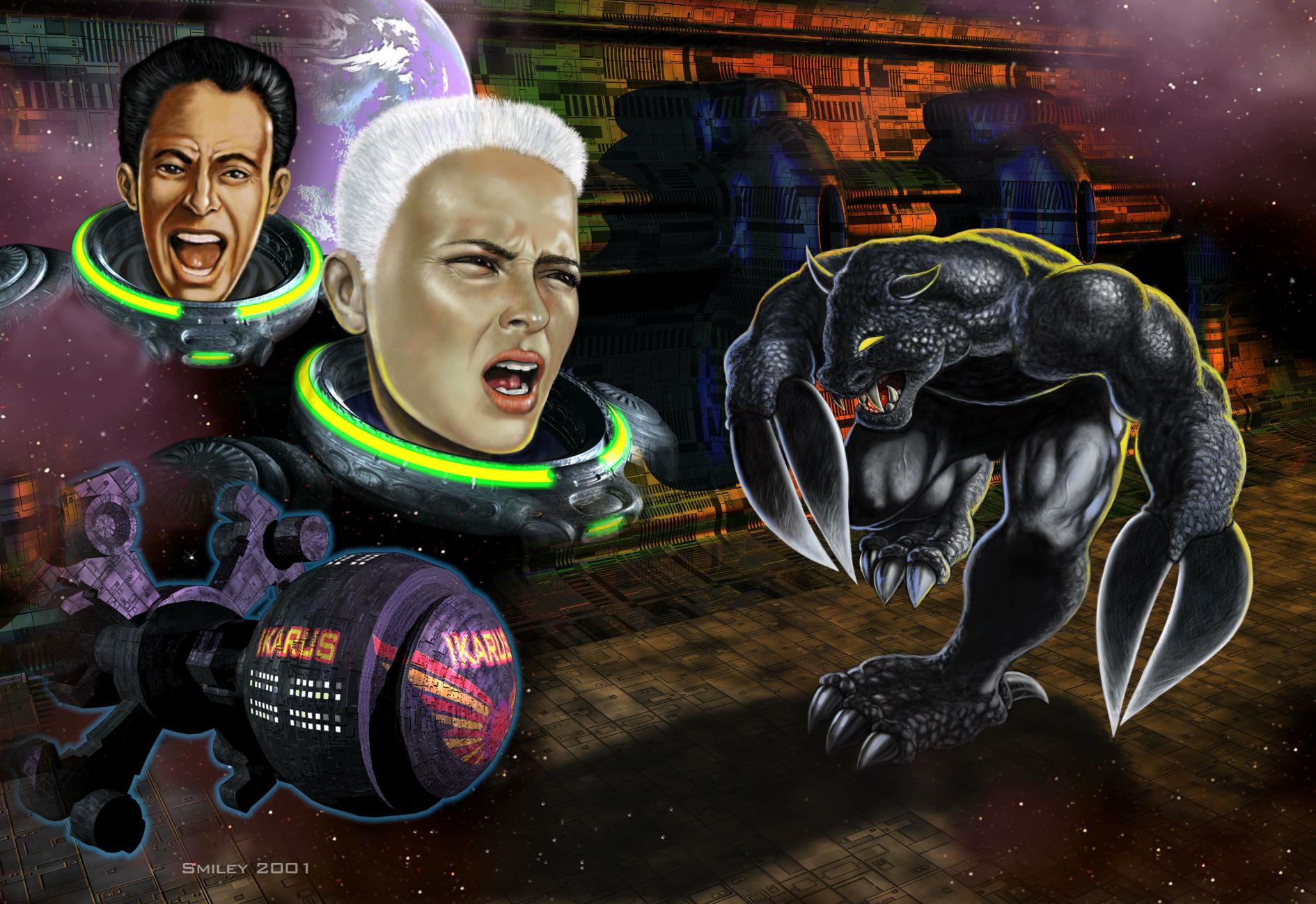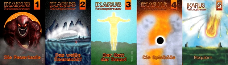 Und nicht zuletzt wollen wir auch des ERSTEN FANs gedenken (dessen wunderbare Zamorra-Homepage es nicht mehr gibt ;-() ... Der wahre erste Fan legt sich nicht nur eine Ausgabe IKARUS zu, nicht zwei, nein auch nicht drei. Selbst vier Bände, wohlgemerkt der selben Nummer!, sind ihm nicht genug. Auch die magische Zahl 5 verschmäht er, hat sie doch im Universum des IKARUS keine Bedeutung. NEIN! SECHS BÄNDE IKARUS Nr.1 müssen es sein! ... mindestens ... und erschlagen von dem literarischen Genie schweigt er und genießt diese Seiten auf seine Art ... | |